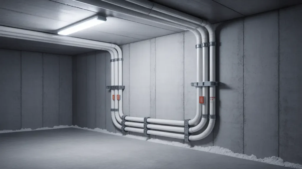 I Uttran, Rönninge, genomförde vi brandtätning av genomföringar i ett flerbostadshus med källare, trapphus och vindsutrymmen. Uppdraget omfattade översyn av el, VVS och ventilation, borttagning av bristfälliga tätningar samt åtgärd av nya öppningar efter kompletteringar. Målet var att återställa kraven på brandcellsgränser, med EI60 i väggar och EI120 i bjälklag enligt gällande brandskyddsbeskrivning.