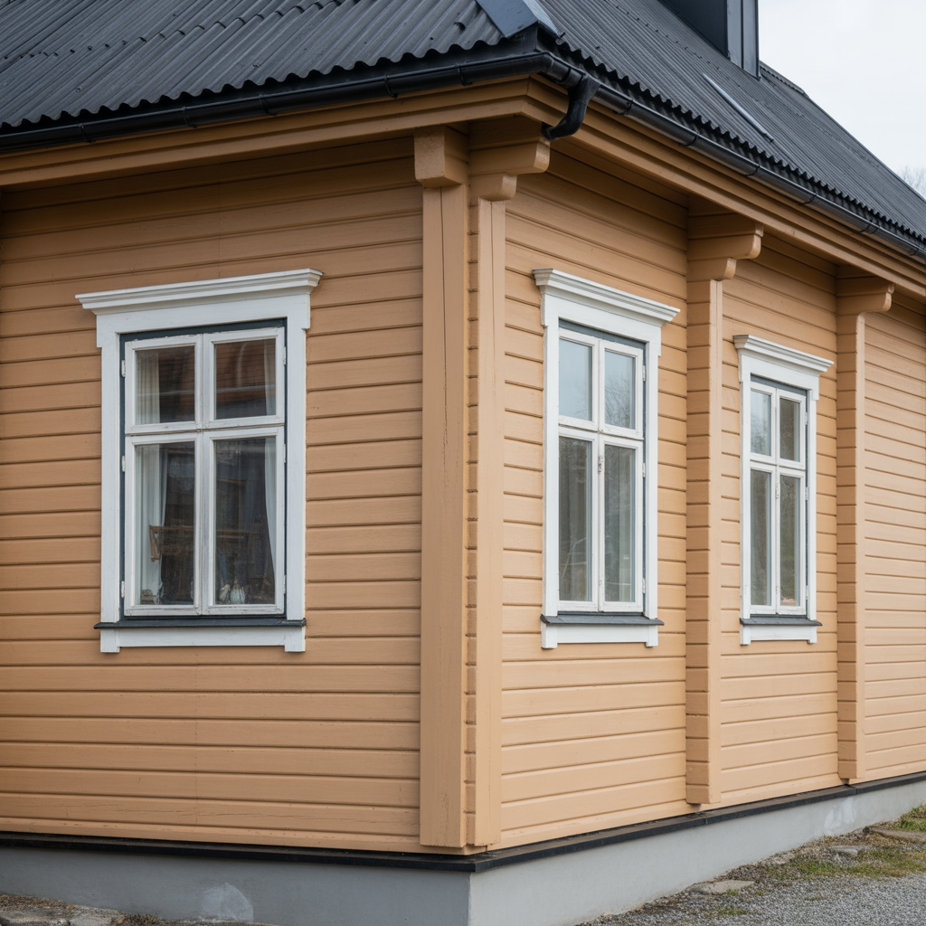 På fönstren togs lös färg och uttorkad kitt bort, kittfalsar rensades och glaset säkrades vid behov. För dessa moment anlitade vi en extern partner med inriktning på fönsterrenovering stockholm. Sprickor i trä lagades med snickerispackel, och lokala partier med början till rötskada frilades och byttes eller stabiliserades. Blottat trä grundades med penetrerande grundolja, särskilt i ändträ och utsatta snittytor, och beslag samt spikskallar punktbehandlades med rostskydd där det behövdes. Efter tork kontrollerades ytorna med handprov och ljussättning för att fånga kvarvarande fiberresning, varefter mellanslipning utfördes. Fogning gjordes med målningsbar, diffusionsöppen fog i vertikala skarvar och runt fönsterbleck utan att låsa in vatten.